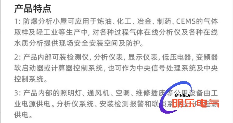 內(nèi)容描述:河南明樂(lè)電氣有限公司生產(chǎn)銷(xiāo)售定做防爆配電箱,防爆正壓柜,防爆分析小屋,防爆撓性連接管,防爆膠泥,防爆接線(xiàn)箱、控制箱、電纜盤(pán)、操作柱、防爆空調(diào)等產(chǎn)品,是一家專(zhuān)業(yè)的防爆電氣產(chǎn)品制造商。產(chǎn)品質(zhì)量及售后有保障,歡迎來(lái)電訂購(gòu)!